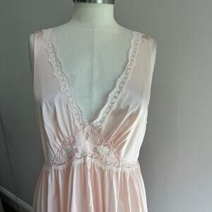 Lorriane 1980s Vintage Pink Nylon Lace Sweep Romantic Slip Nightgown Size L