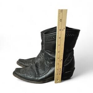 Minor wear and scuffs on boots. Good condition please see all pics attached for complete details. Boot measures 9 in high. Zippers work great as well! Thanks for inquiring!