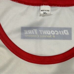 Off-white vintage look with stripes down the side. Front of shirt says angels has an additional logo that says Los Angeles angels at the bottom it says established in 1961 with the logos the back says discount tire and service centers as the promoter in the back has the A logo. Major League Baseball Merchandise 6/20/25