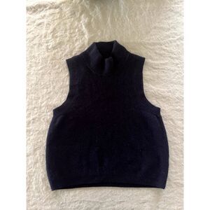 Los Angeles Apparel Cashmere Knit Sleeveless Mock Neck in Navy - XS