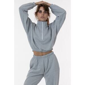 Los Angeles Apparel FLEX FLEECE HALF ZIP CROPPED PULLOVER XS S
