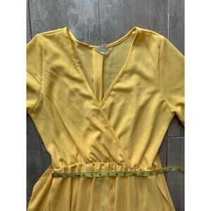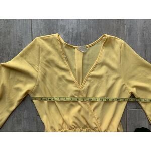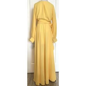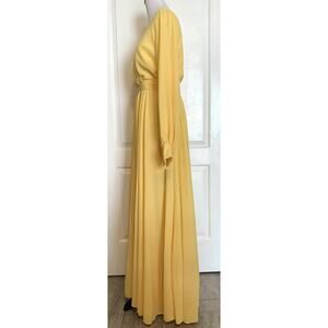 Los Angeles Boutique V Neck Long Sleeve Chiffon Soft Yellow Maxi Dress Belted M