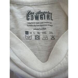 Los Angeles Cowgirl - Cropped Round Neck Tee in White & Pink