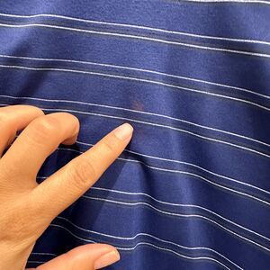 Shirt has a small, almost non-noticeable discoloration spot on the back. Size tag & arm logo is faded—please refer to measurements in photos. Overall in good condition.