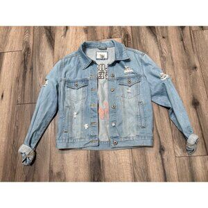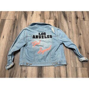 Los Angeles Girl Squad Denim Jacket Distressed Blue Forever 21 S Lightweight Cas