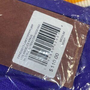 The Los Angeles Kings Mitchell & Ness NHL French Terry Hoodie in Purple, is a stylish and comfortable pullover for men. This heavyweight hoodie features a hood for added warmth, long sleeves, and a solid color design. Perfect for all seasons, this hoodie is a must-have for any fan of the Los Angeles Kings or anyone looking for a quality piece of activewear.