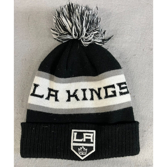 Los Angeles Kings NHL Unisex Adidas Cuffed Beanie Black/White Poof on top