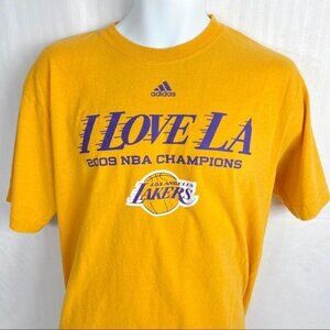 Celebrate the legacy of the 2009 NBA Champion Los Angeles Lakers with this Adidas gold t-shirt. Featuring bold graphics and signatures, it showcases your team pride.