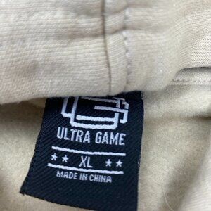 Ultra Game Pullover hoodie topped with vintage-inspired chenille Los Angeles Lakers text. Fitted with an adjustable hood and kanga pocket. Finished with ribbing trims.
