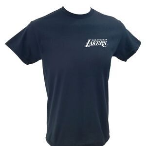 Los Angeles Lakers Double Script Retro Logo BLACK Basketball Tee. Size: S, M, L and XL