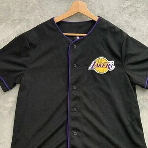 Los Angeles Lakers Jersey Mens Medium Black Button Down NBA Unk Basketball #48