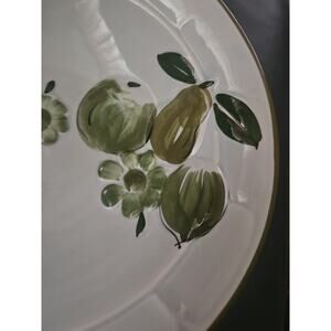 * Design: Embossed fruit and floral pattern, often featuring pears, grapes, and flowers, with hand-painted accents in shades of green and brown.