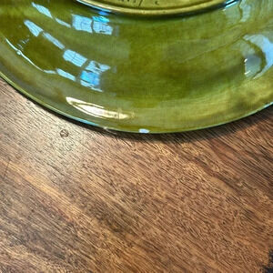 Great vintage chip and dip bowl from Los Angeles potteries. Lovely design see last pics for small chip on underside of rim unseen when plate in use and could be covered with a little acrylic paint! Dish glaze has some crazing given its age. Great retro kitchenware.