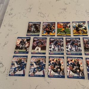 Set of football trading cards featuring various players. Total