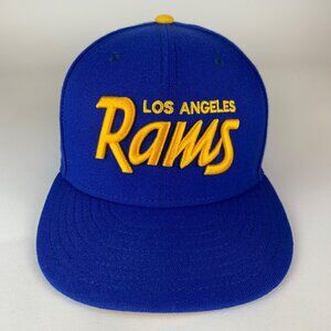 Los Angeles Rams NFL Blue New Era 59Fifty Script Fitted Hat Mens 7 3/8