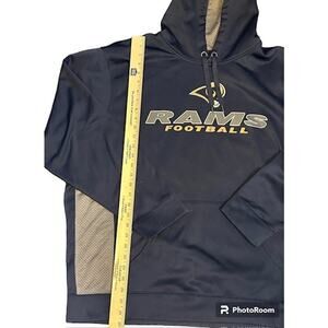 NFL team apparel Los Angeles Rams Synthetic/Fleece Hoodie Sweatshirt Pullover 2XL This is in excellent pre-owned condition. Navy/Gray