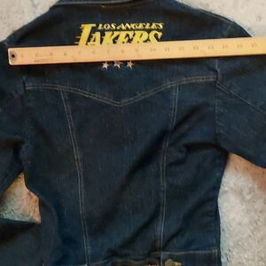 It is a womens jean jacket size medium. Please see measurements in pictures. All logos and designs are embroidered, not patches.
