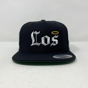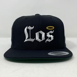 Los Old English Gold Halo Over S Snapback Hat Cap