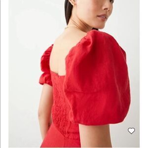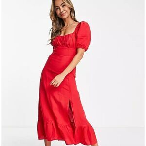 Like new Los Angeles Atelier & Other Stories linen square neck ruffle frill hem pleated bodice short ruffled sleeves midi red dress red 8.