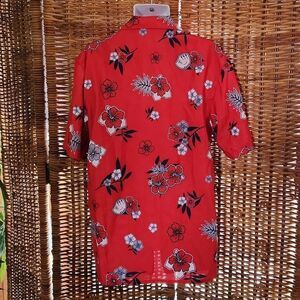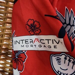 This is a cool Los Angeles Anaheim Angels Hawaiian aloha shirt. There is an awesome floral design of Hibiscus flowers and a business logo on the right sleeve.