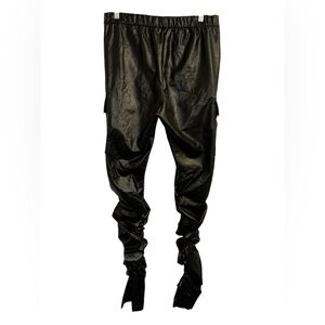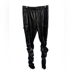 Elevate your style with these sleek black faux leather cargo pants. Perfect for a night out or a chic daytime look.