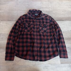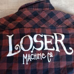 Loser Machine Company Flannel shirt Long Sleeve Mens M Red Black Plaid Checker