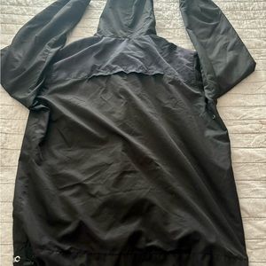Windbreaker lightweight jacket with hood and front pockets in addition to inside pocket. Has the right amount of patina if you will. Def used but still has plenty of life