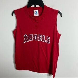Lost Angeles Angels Sleeveless Top NWT Small Red Majestic MLB Button Down