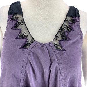 Purple with black lace detail, silk/cotton blend light fabric tank style top.