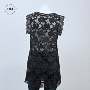 Lost April Lace Pom Pom Sleeveless Sheer Mini Dress Black Women S