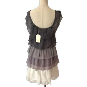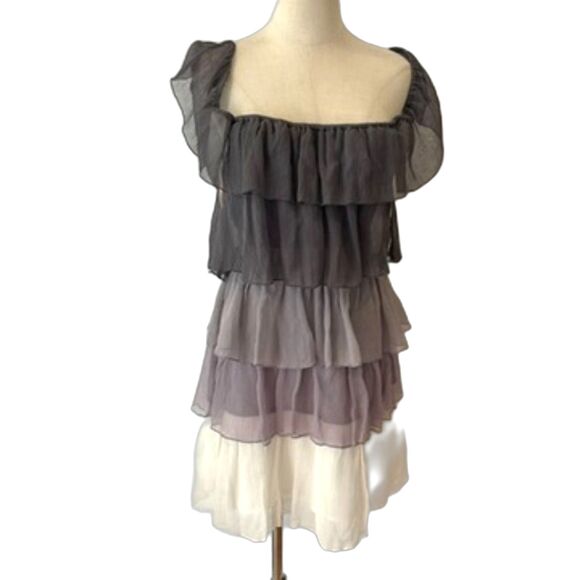 Lost April Tiered Silk Dress Grey Gauze Small Lined