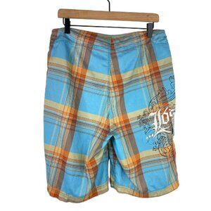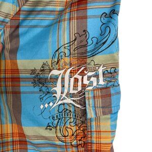 Lost Enterprises Boardshorts Mens 34 x 10" Plaid Print Swim Trunks Tattoo Ink