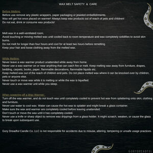 ** Best scent throw occurs with use of an electric wax warmer of 25 watts or higher. These melt beautifully with a candle warming lamp placed over a heat-safe warmer dish or tin. **