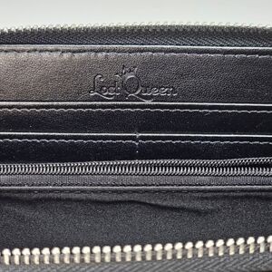 This Lost Queen celestial wallet features a mystical black & white space pattern ✦ zodiac signs ✦ a black cat & occult motifs.