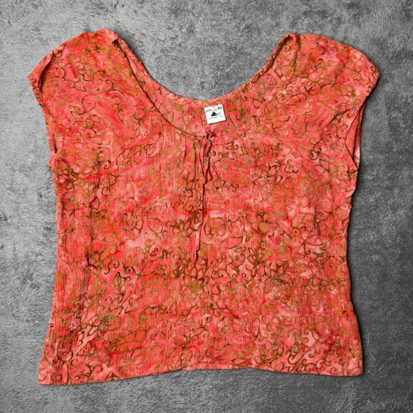 Lost River Clothing Co Batik Crinkle Sleeveless Top Shirt XL Boho Art to Wear