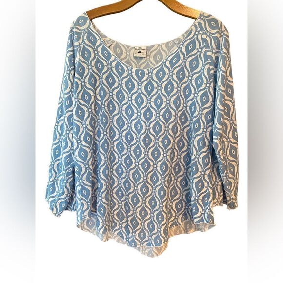 Lost River Sz M Light Blue White Patterned Rayon Relaxed Casual Everyday Top