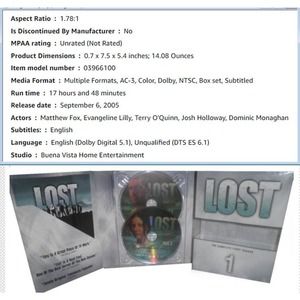 Get lost in the hottest series of 2004. From J.J. Abrams, the creator of ALIAS, comes the action-packed adventure that became a worldwide television event. Stranded on an island that holds many secrets, 48 people must band together if they hope to get home alive. Now you can experience the nonstop excitement and mystery of every episode, from the show's stunning first minute to its spectacular finale, on a seven-disc set. Presented in a widescreen theatrical format with 5.1 Surround Sound and bursting with more than eight hours of original bonus features -- including unaired LOST flashbacks from the final episode -- LOST is a real find.