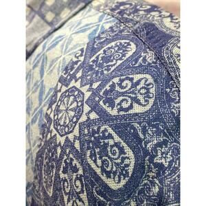 Lost Shirt Mens XL Blue Patchwork Denim Look Rayon/Linen Hawaiian Button Up