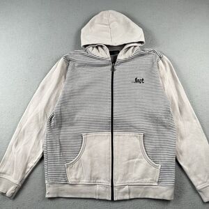 Lost Skateboard Hoodie Men’s Medium Tan Striped Full Zip Surf Sweatshirt