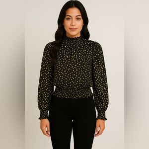 Lost + Wander Black Blouse with Yellow leopard Print Size XS, NWT