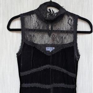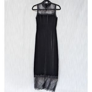 Lost + Wander Black Lace Velvet High Neck Sleeveless Maxi Dress, size S