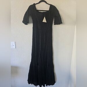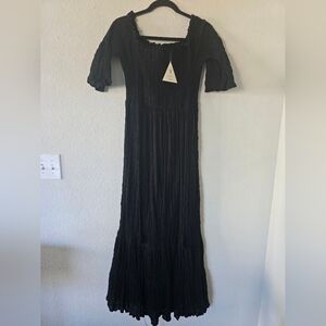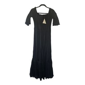 Lost + Wander Bodice Maxi Dress Sz M Black Smocked Bell Sleeves Dark Romantic
