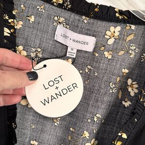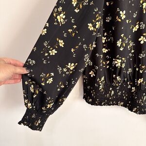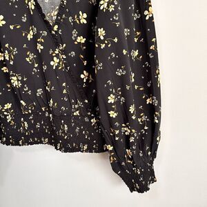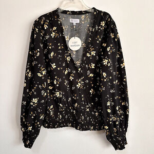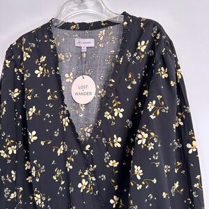 Lost + Wander Champagne Daisy Floral Long Sleeve Wrap Top 1X Black Smocked NEW