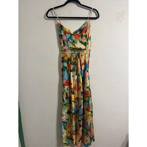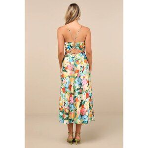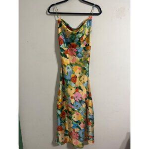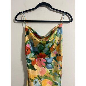Lost + Wander Fantasia Floral Satin Midi Slip Dress With Spaghetti Straps Medium