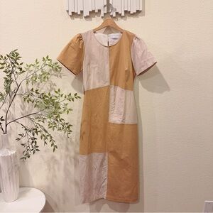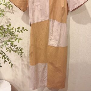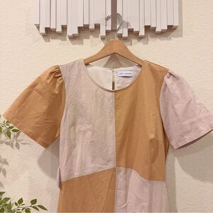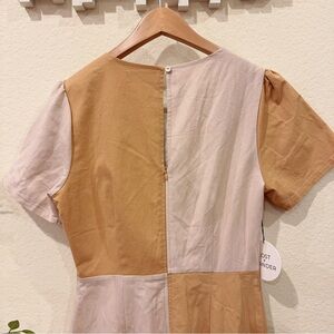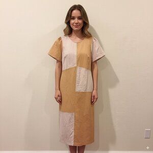 Lost + Wander LA Crème Color Block Cottage Linen Midi Dress Cream Sand OS NWT