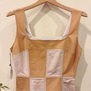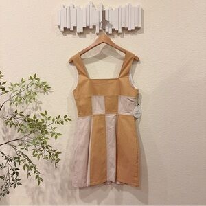 Lost + Wander LA Crème Color Block Linen Mini Dress in Cream Sand One Size NWT