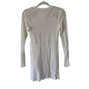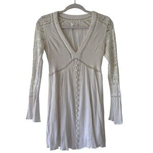 Lost + Wander Lace Crochet V-Neck Tunic Dress White With Long Sleeves
