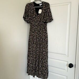 Never won, new w/tags Lost + Wander New Day Floral Tiered Maxi Dress; BLACK RED FLORAL, size large. Has pockets!