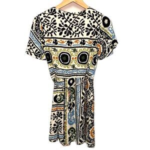 Lost + Wander Oracle Ivory Black Green Orange Wrap Print Mini Dress Size XS