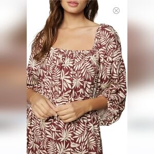 Lost + Wander Palm Oasis Puff Sleeve Midi Dress-Size Large